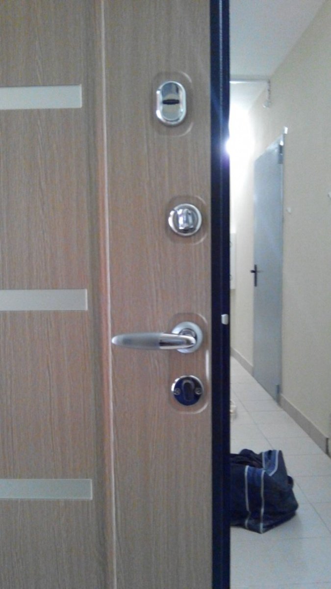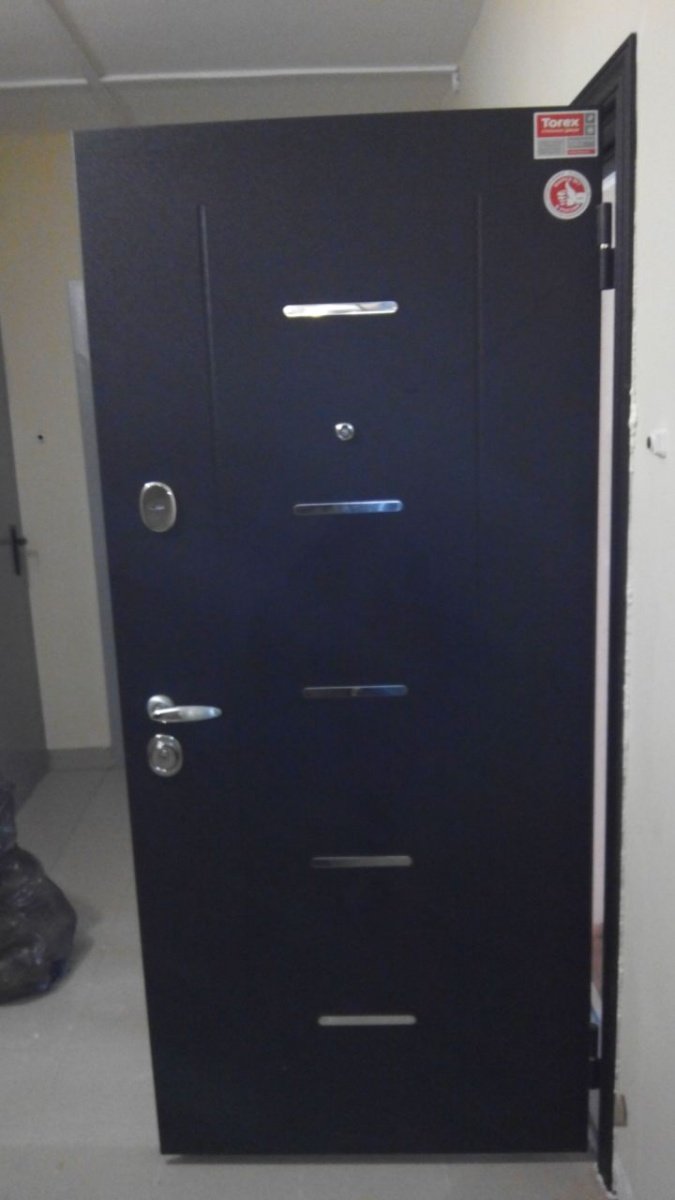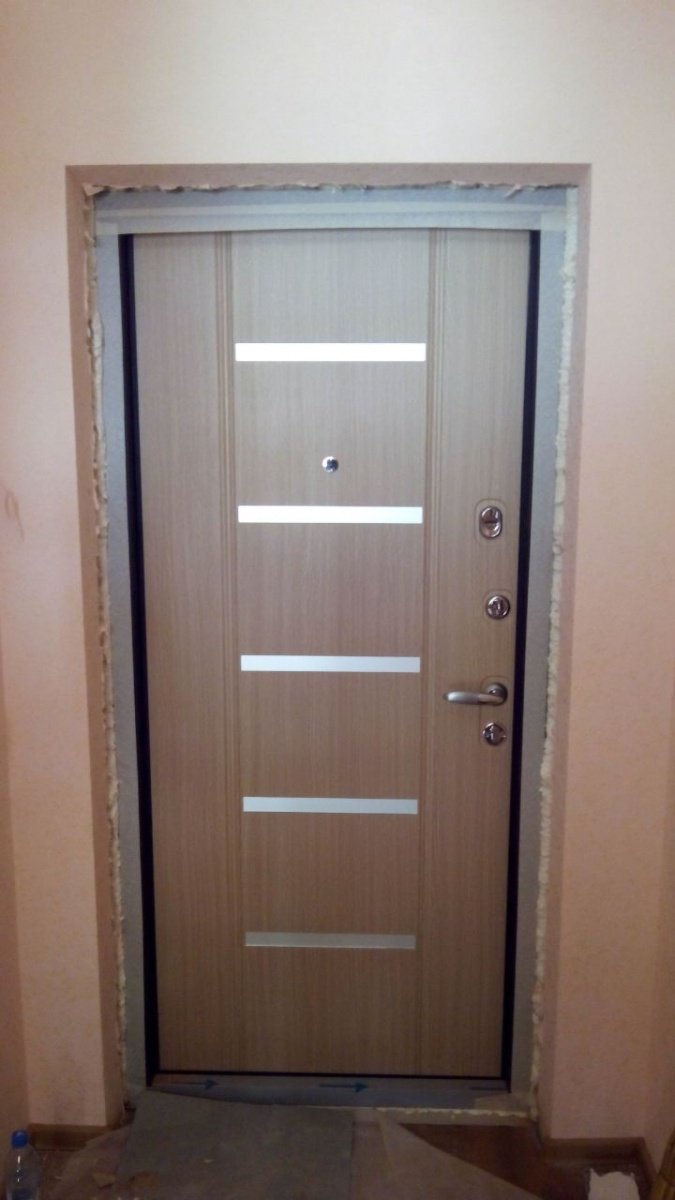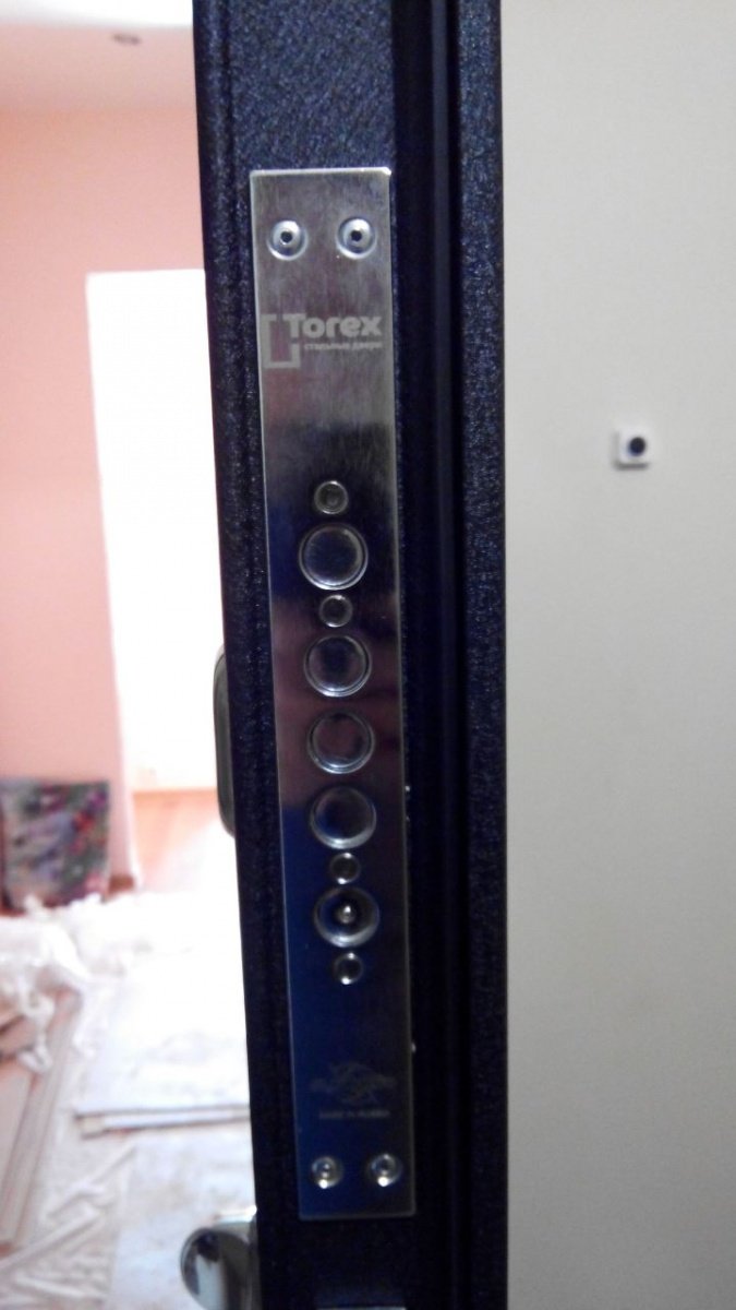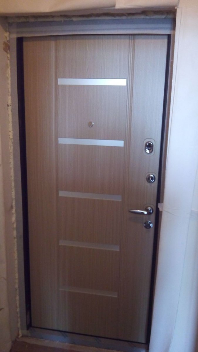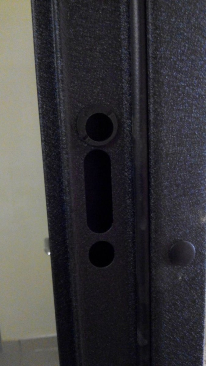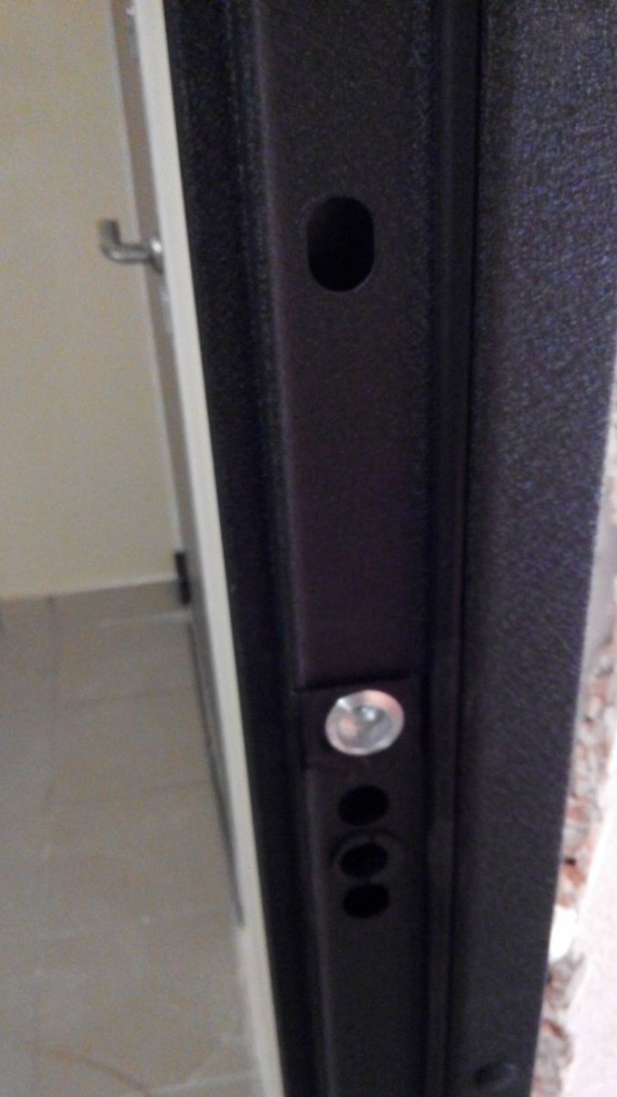 Короб двери выполнен из рулонной холоднокатаной стали. Рама усиленного типа со специальными пластинами усиления и гибами жесткости. В замковой зоне - специальная защита от вскрытия двери методом выбивания ригелей. Дверной короб объединен с широким фигурным наличником, который перекрывает зазор между стеной и коробом до 55 мм.